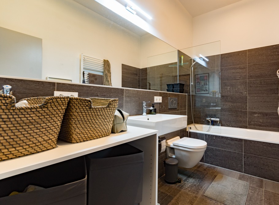 Das großzügige Badezimmer mit Badewanne sowie hochwertiges Parkett unterstreichen den Wohnkomfort. Ein Aufzug und ein separates Kellerabteil runden das Angebot ab.
