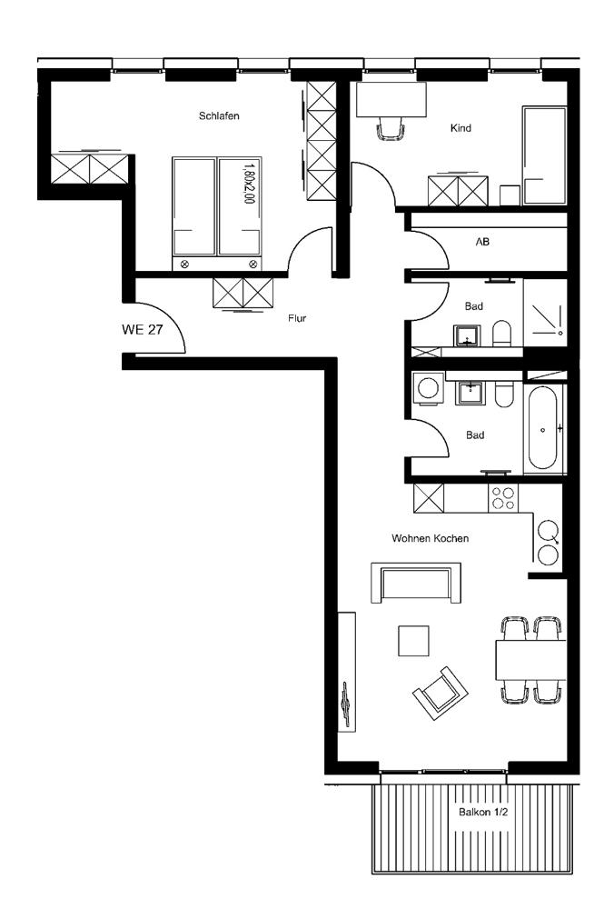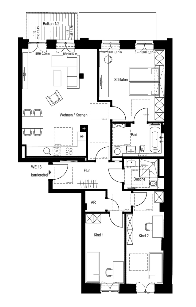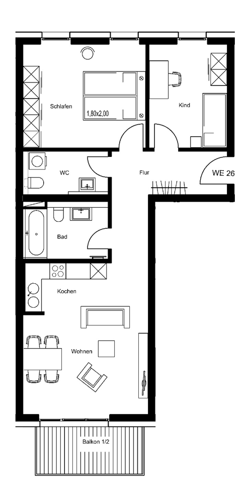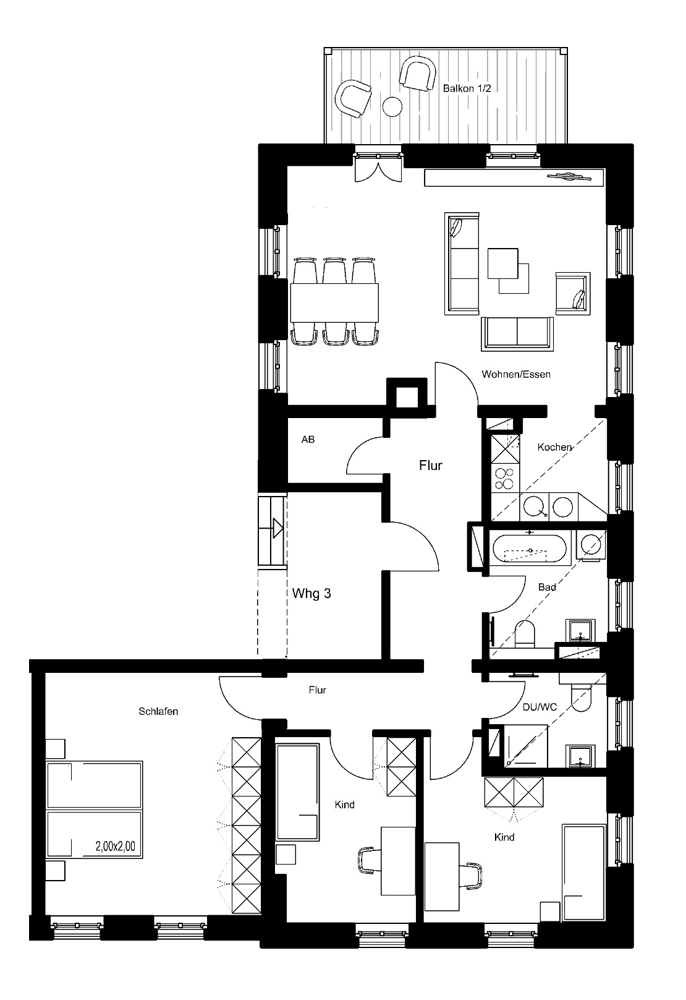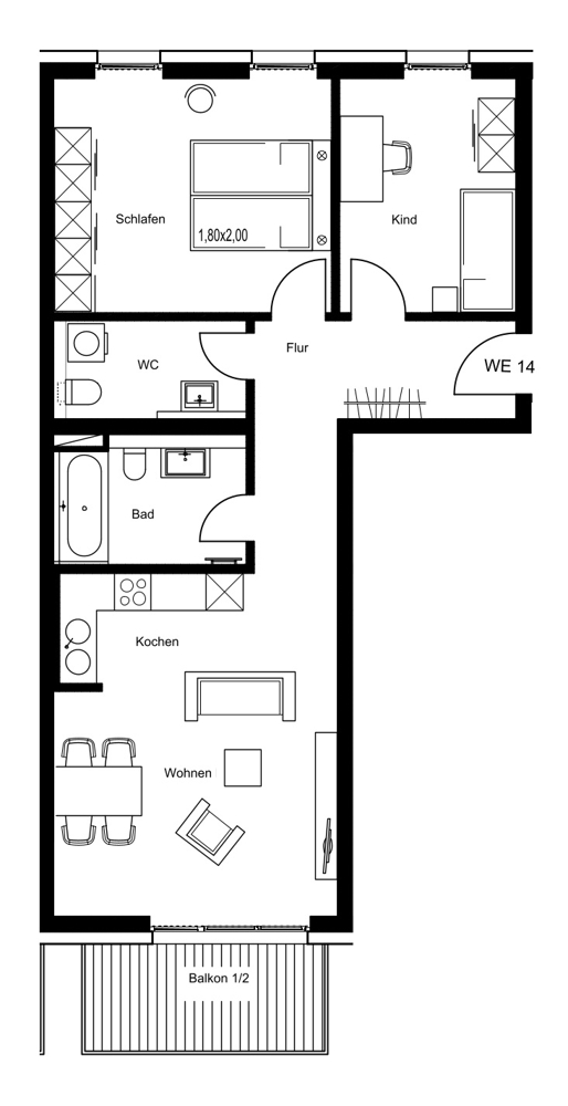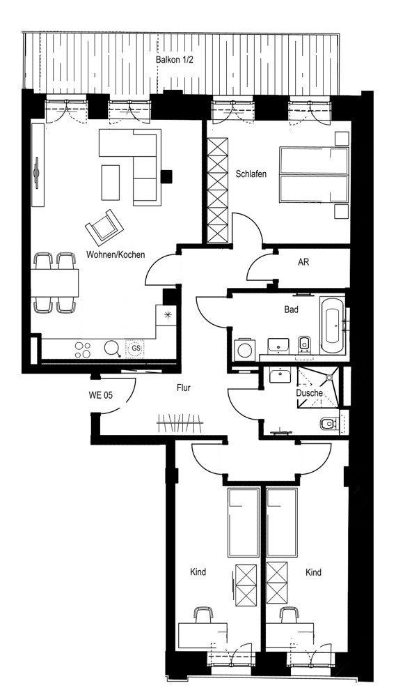 Das vielfältige Wohnungsangebot reicht von kompakten 1,5-Zimmer-Apartments bis hin zu großzügigen 5-Zimmer-Wohnungen mit Wohnflächen zwischen ca. 28 und 164 m² – ideal für Singles, Paare und Familien gleichermaßen.