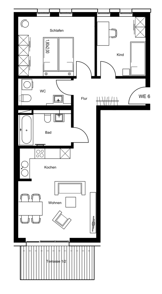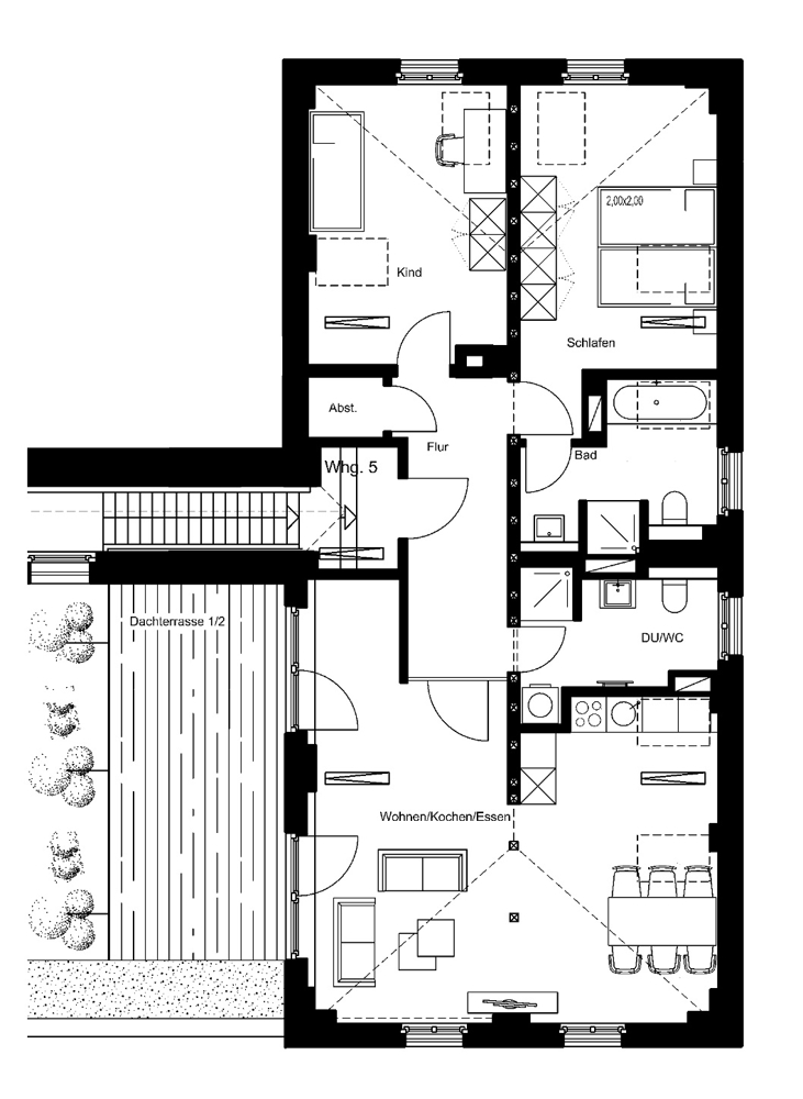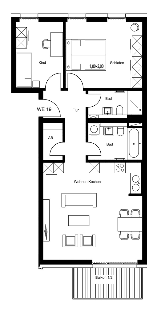 Die Wohnungen überzeugen durch lichtdurchflutete Räume, offene Grundrisse und eine stilvolle Ausstattung. Ein Großteil der Einheiten verfügt über mindestens einen Balkon, eine Loggia oder (Dach-)Terrasse – perfekt zum Entspannen mit Blick ins Grüne oder aufs Wasser. Offene Küchen schaffen ein großzügiges Wohngefühl, während durchdachte Grundrisse Raum für individuelle Wohnideen bieten.