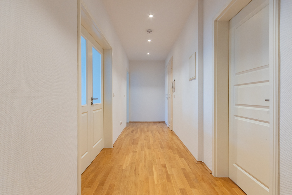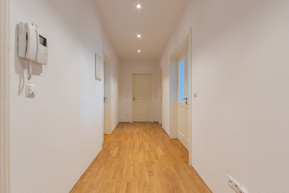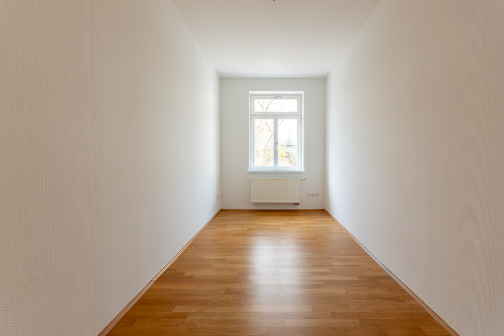 Mit drei großzügig geschnittenen Zimmern, darunter eine separate Küche, verfügt sie über hochwertige Ausstattungsmerkmale wie eleganten Parkettboden und ein stilvolles Tageslichtbad, das sowohl mit Wanne als auch mit Dusche ausgestattet ist.