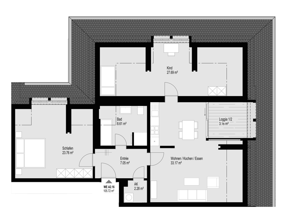 Diese charmante Dachgeschosswohnung mit einer Wohnfläche von ca. 106 m² vereint modernen Wohnkomfort mit stilvoller Ausstattung. Die drei großzügigen Zimmer sind lichtdurchflutet und bieten viel Raum zur persönlichen Entfaltung. Der offene Wohn- und Essbereich samt offener Küche bildet das Herzstück der Wohnung – ein Ort, der Kochen, Wohnen und Entspannen harmonisch verbindet. Die angrenzende Loggia lädt mit ihrem Ausblick und der ruhigen Lage zum Verweilen im Freien ein.
