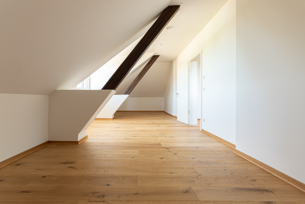 Ein privater Kellerraum, ein Fahrradabstellraum sowie ein zur Wohnung gehörender Stellplatz runden das Angebot ab. Diese Dachgeschosswohnung bietet eine gelungene Kombination aus Raum, Qualität und Atmosphäre – ideal für Menschen, die stilvolles Wohnen mit hoher Funktionalität verbinden möchten.