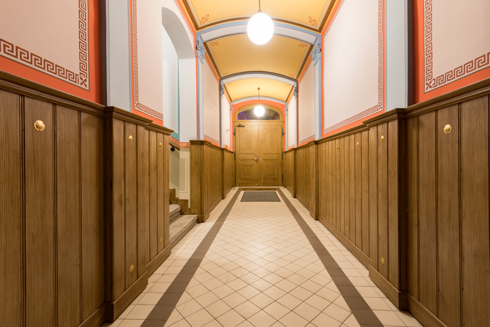 Das gepflegte Gebäude aus dem Jahr 1878 beherbergt die rund 100,88 m² große Wohnung mit drei hellen, großzügig geschnittenen Zimmern. Der gut durchdachte Grundriss bietet zwei hochwertig ausgestattete Badezimmer: ein modernes Hauptbad mit Badewanne, Dusche und Doppelwaschbecken sowie ein separates Gästebad mit Dusche.