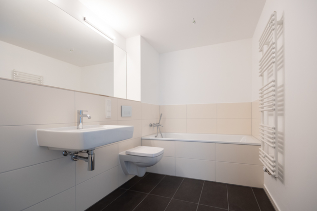 Zu den Annehmlichkeiten gehören zwei moderne Badezimmer, eines mit Badewanne und Waschmaschinenanschluss sowie eines mit Dusche.