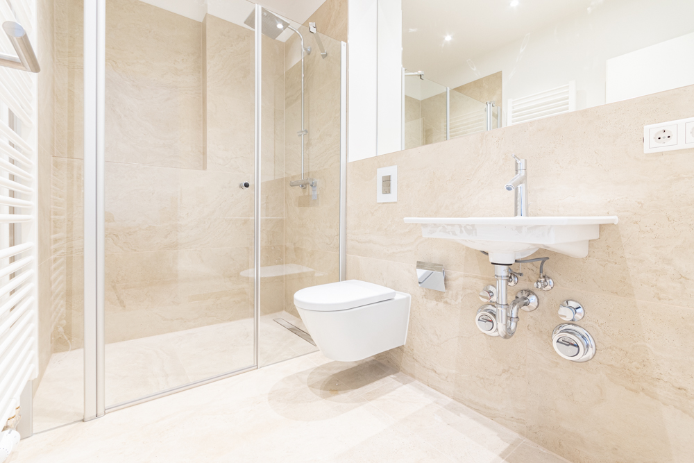 Das großzügige Schlafzimmer bietet viel Platz und Stauraum, während ein weiteres Zimmer flexibel als Kinder-, Gäste- oder Arbeitszimmer genutzt werden kann. Zwei separate Sanitärbereiche – ein modernes Badezimmer mit Wanne inkl. Waschmaschinenanschluss sowie ein weiteres Badezimmer mit Dusche – sorgen für zusätzlichen Komfort im Alltag. Zusätzlich steht Ihnen ein praktischer Abstellaum zur Verfügung.