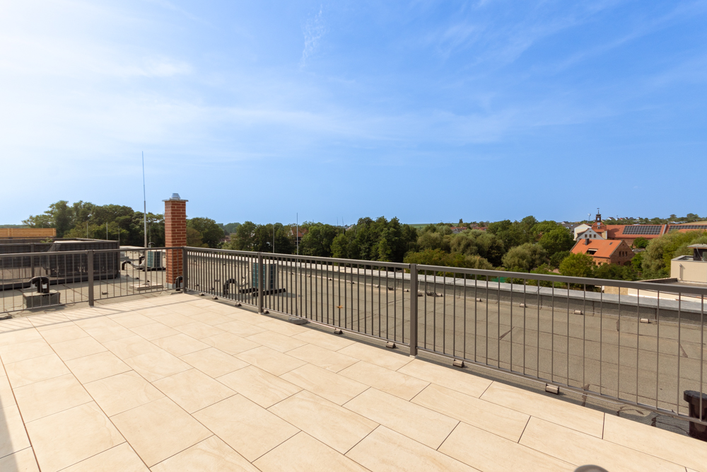 Diese moderne 4-Zimmer-Wohnung bietet auf ca. 128 m² eine durchdachte Grundrissgestaltung mit lichtdurchfluteten Räumen. Der großzügige Wohn-, Koch- und Essbereich bildet das Herzstück der Wohnung und verfügt über einen direkten Zugang zur Loggia. Von hier aus führt eine Treppe auf die rund 60 m² große Dachterrasse, die viel Platz zum Entspannen, Gärtnern oder geselligen Beisammensein bietet.