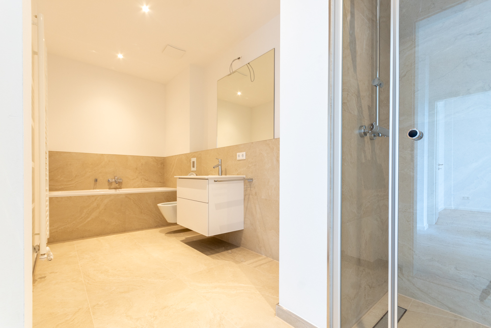 Diese moderne 4-Zimmer-Wohnung bietet auf ca. 128 m² eine durchdachte Grundrissgestaltung mit lichtdurchfluteten Räumen. Der großzügige Wohn-, Koch- und Essbereich bildet das Herzstück der Wohnung und verfügt über einen direkten Zugang zur Loggia. Von hier aus führt eine Treppe auf die rund 60 m² große Dachterrasse, die viel Platz zum Entspannen, Gärtnern oder geselligen Beisammensein bietet.